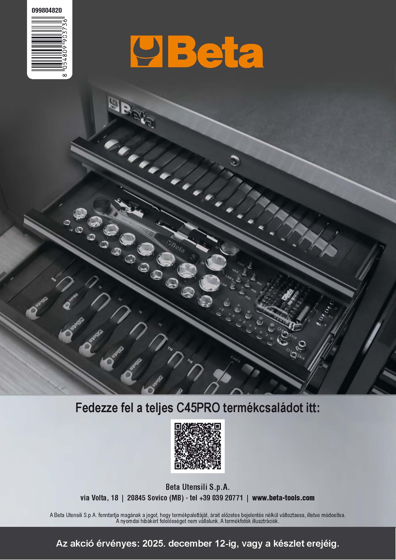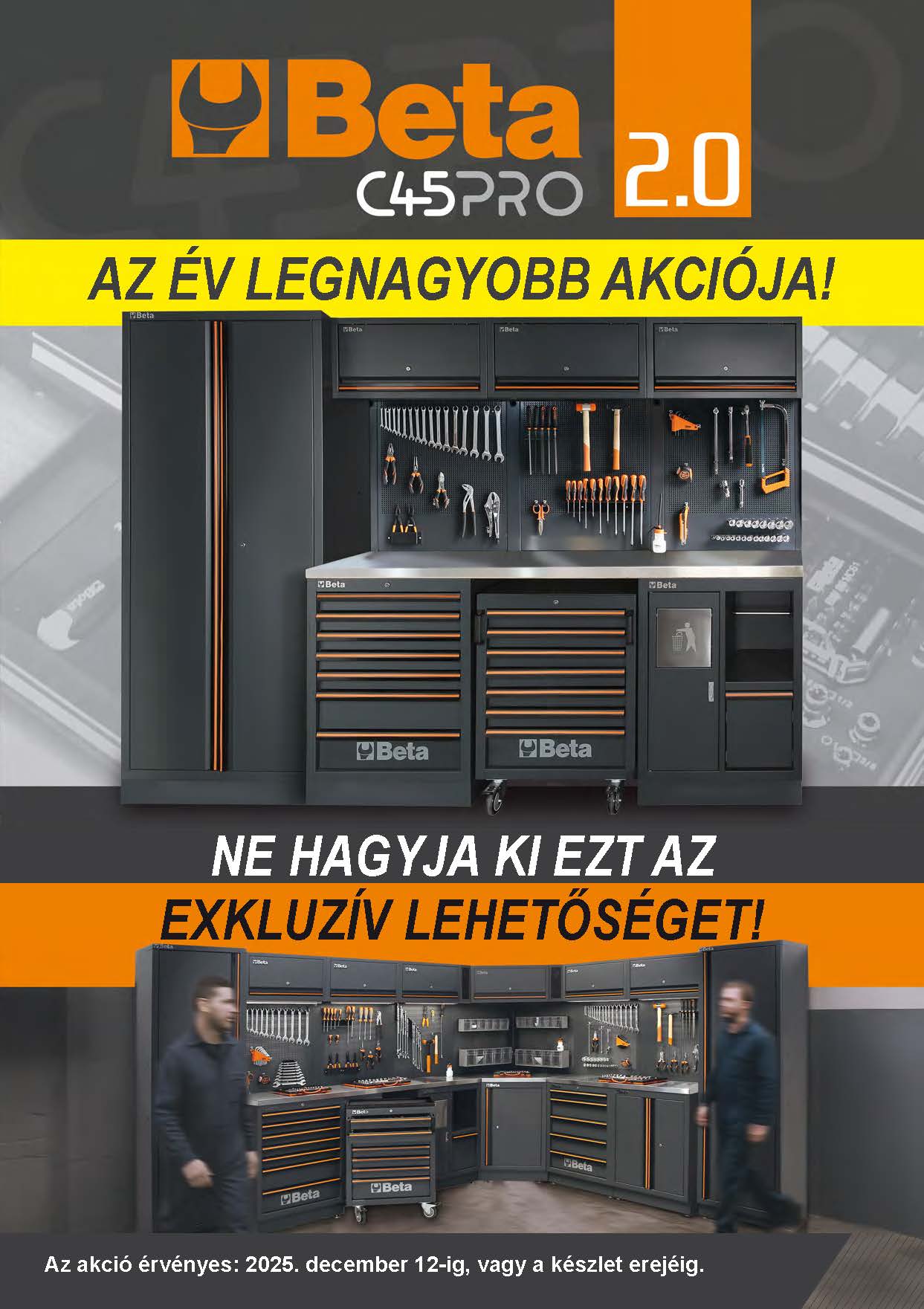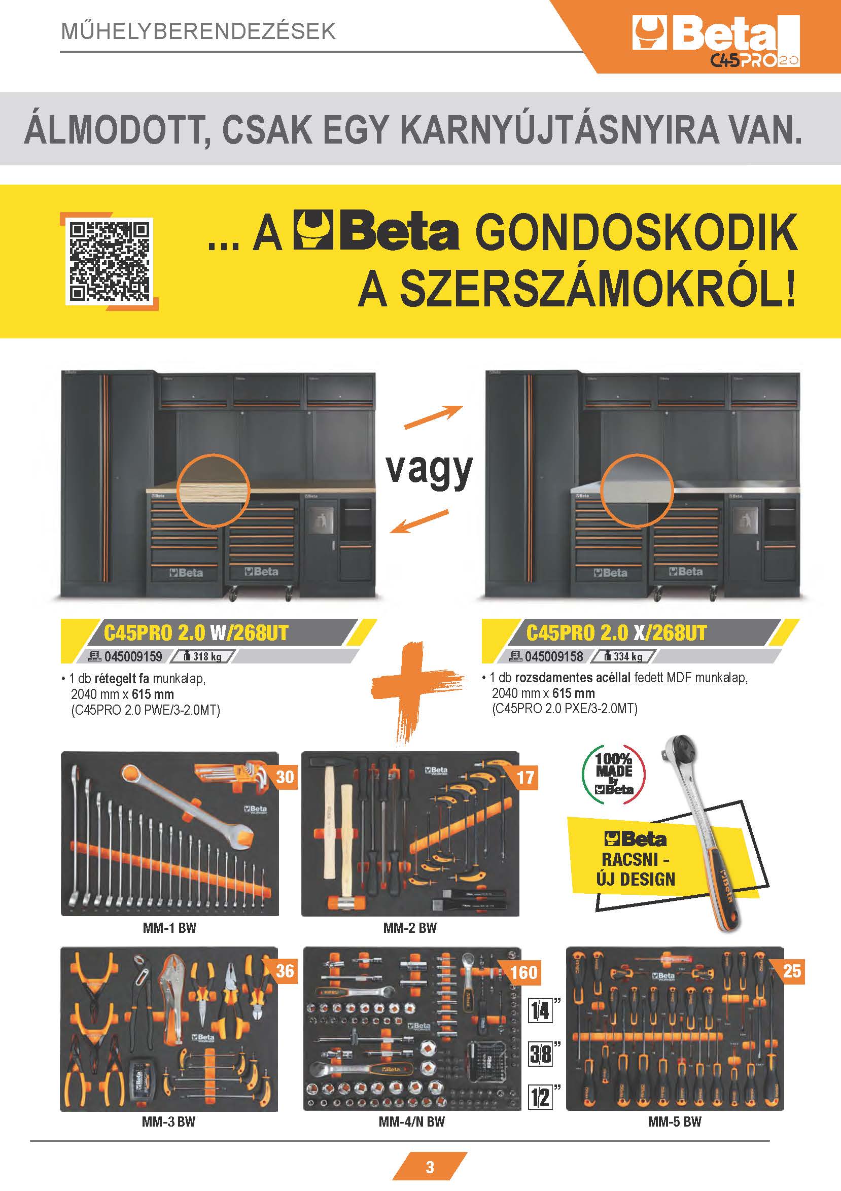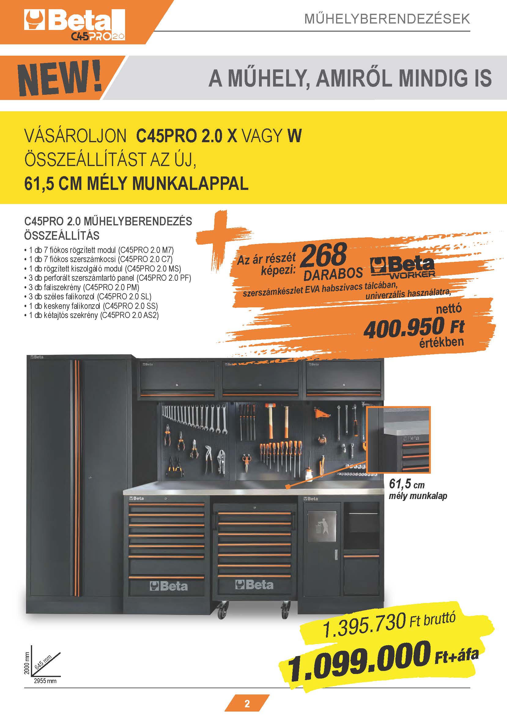 A Beta C45PRO műhelyberendezése megújult! A piaci visszajelzésekre reagálva a munkalap immáron 61,5 cm mély. Éppen ezért a tavalyi árnál kicsit drágább ugyan, de sokkal használhatóbb!